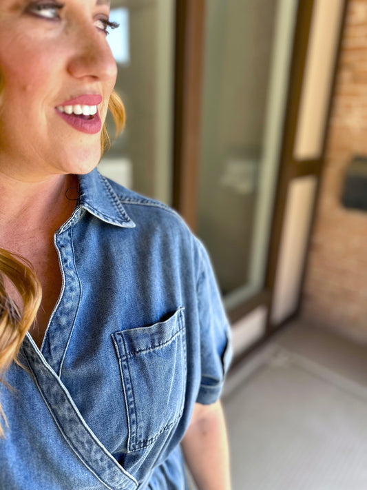 Sold outAsymmetric Denim Wrap Dress