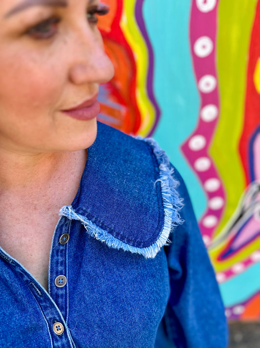 Women's Real Denim Peter Pan Collar Dress Dark