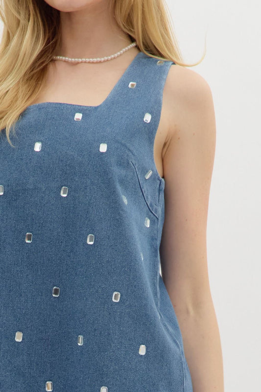 Sold outDenim & Rhinestone Mini Dress