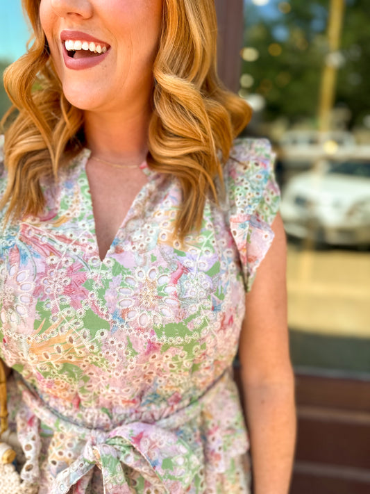 Women's Floral Eyelet Lace Tiered Dress Multi