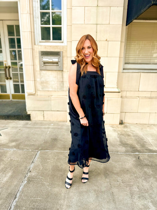 Blossom Embroidery Shoulder Tie Maxi Dress